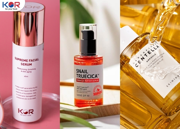 • Serum dưỡng trắng, mờ nhăn KOR Hàn Quốc: Công dụng: Dưỡng trắng da, cải thiện nếp nhăn chuyên sâu. Thành phần nổi bật: Gatuline, Panthenol, chiết xuất rau má.