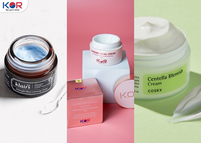 • Kem dưỡng da Hàn Quốc , cấp ẩm, trẻ hóa KOR: Công dụng: Cấp ẩm, làm căng da, ngăn ngừa lão hóa, giảm nếp nhăn, vết chân chim. Thành phần nổi bật: Gatuline, Fresh Cells™ – carrot, 7 peptides.