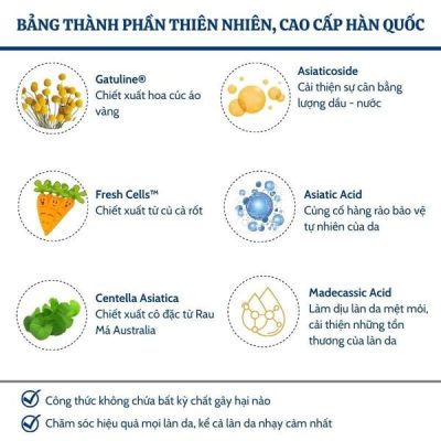 Làm Mềm/Dịu (Soothers)Allantoin, Chiết xuất lô hội (Aloe Vera), Chiết xuất rau má (Centella Asiatica)Giảm kích ứng, làm dịu da ngay tức thì, hỗ trợ quá trình chữa lành các tổn thương nhỏ do khô da.