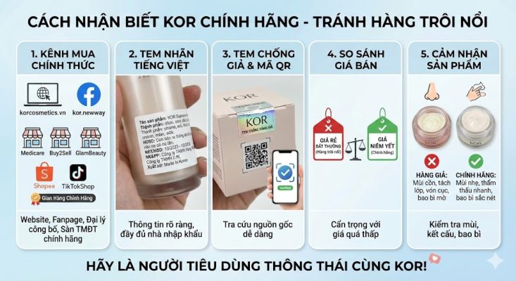 Cách nhận biết KOR chính hãng, tránh mua nhầm hàng trôi nổi