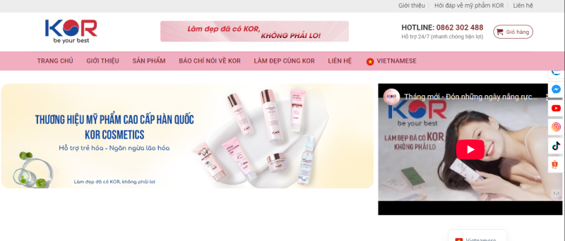 KOR là một thương hiệu mỹ phẩm Hàn Quốc chính hãng, có hệ thống nhận diện, website, kênh phân phối rõ ràng.