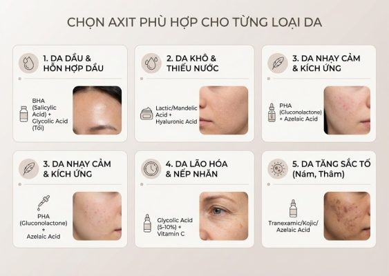 4. Hướng dẫn chọn axit phù hợp cho từng loại da