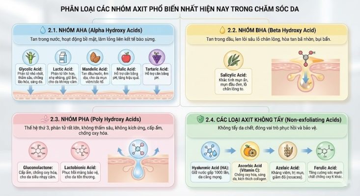 Tổng hợp các loại axit tốt cho da – Nên dùng loại nào cho từng loại da?