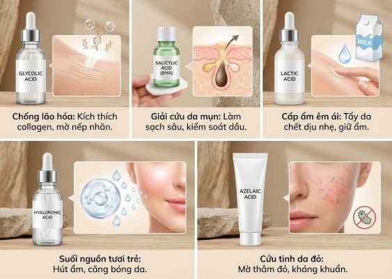 3. Chi tiết công dụng của từng loại axit “vàng” cho làn da