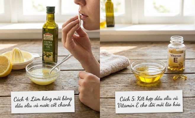 2.5. Cách 5: Kết hợp dầu oliu và Vitamin E cho đôi môi lão hóa