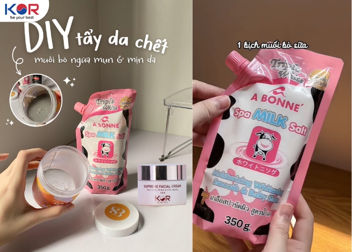 Muối bò tẩy tế bào chết A Bonne Spa Milk Salt là sản phẩm nổi tiếng đến từ Thái Lan, được nhiều chị em yêu thích nhờ công thức kết hợp giữa muối khoáng và chiết xuất sữa giúp loại bỏ tế bào chết, dưỡng sáng và làm mềm da hiệu quả. Tuy nhiên, không phải ai cũng biết cách kết hợp muối bò sao cho phát huy tối đa công dụng mà vẫn dịu nhẹ với làn da. Vậy muối bò tẩy tế bào chết nên kết hợp với gì để đạt hiệu quả cao nhất? Hãy cùng KOR tìm hiểu trong bài viết dưới đây!